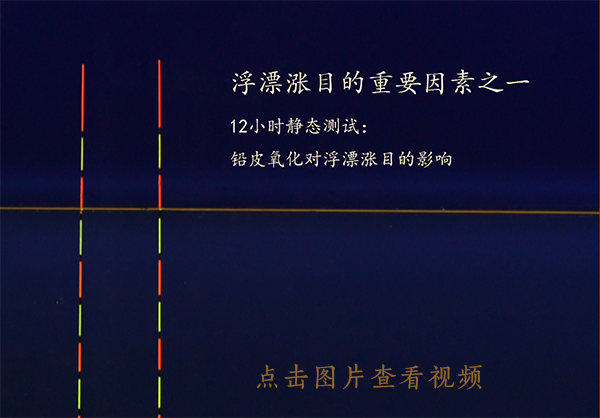 b.測(cè)試方法:將兩支掛有相同鉛墜的浮漂同時(shí)放水里測(cè)試,在12小時(shí)后觀察漂目的變化。